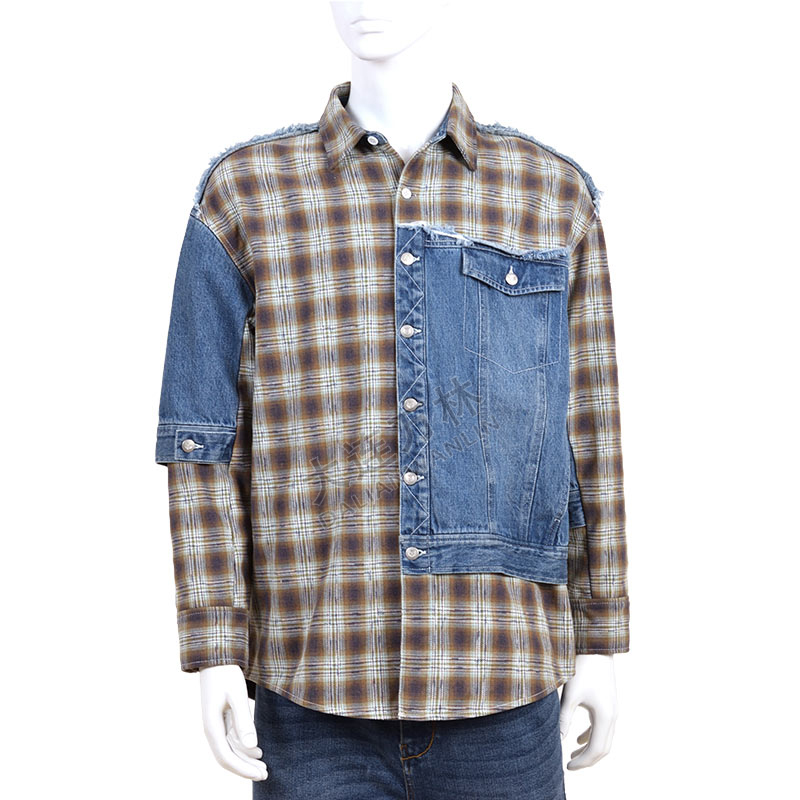 牛仔拼接襯衫