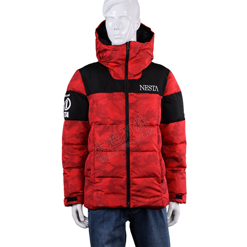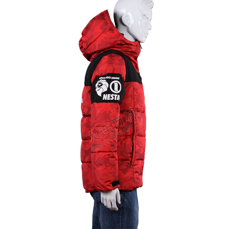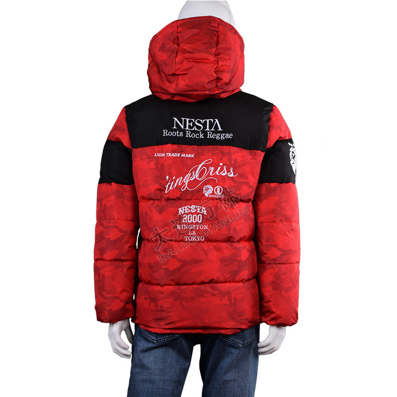 男士印花拼接連帽羽絨服