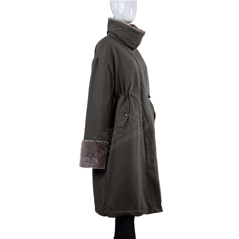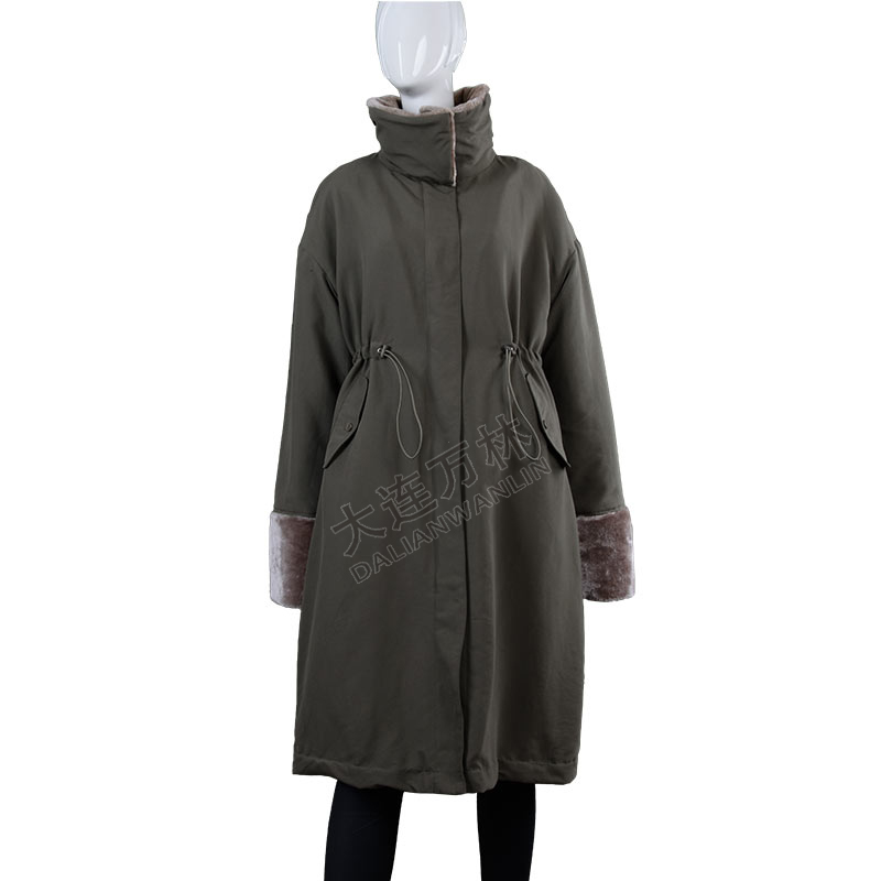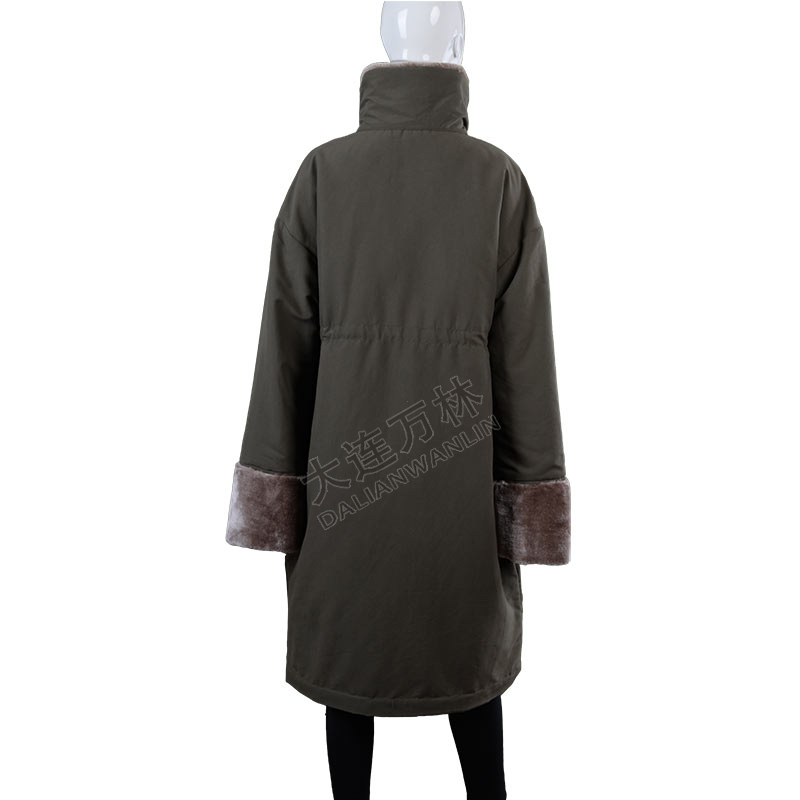 女士立領(lǐng)毛毛袖口長(zhǎng)款羽絨服