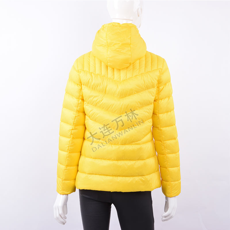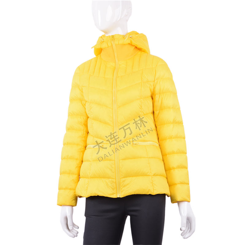 黃色輕薄連帽羽絨服