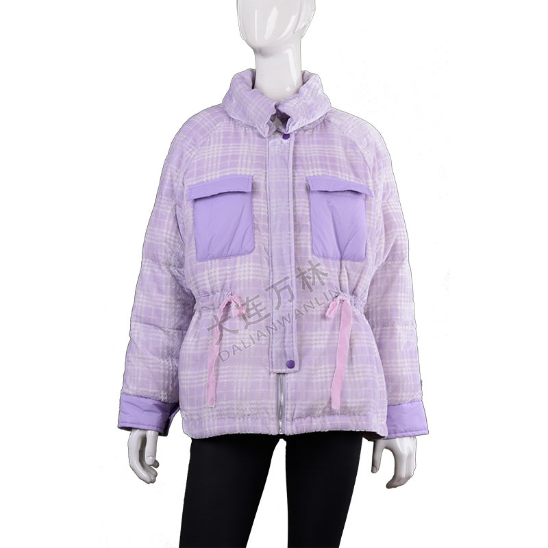 女士翻領(lǐng)拼接腰部抽繩羽絨服