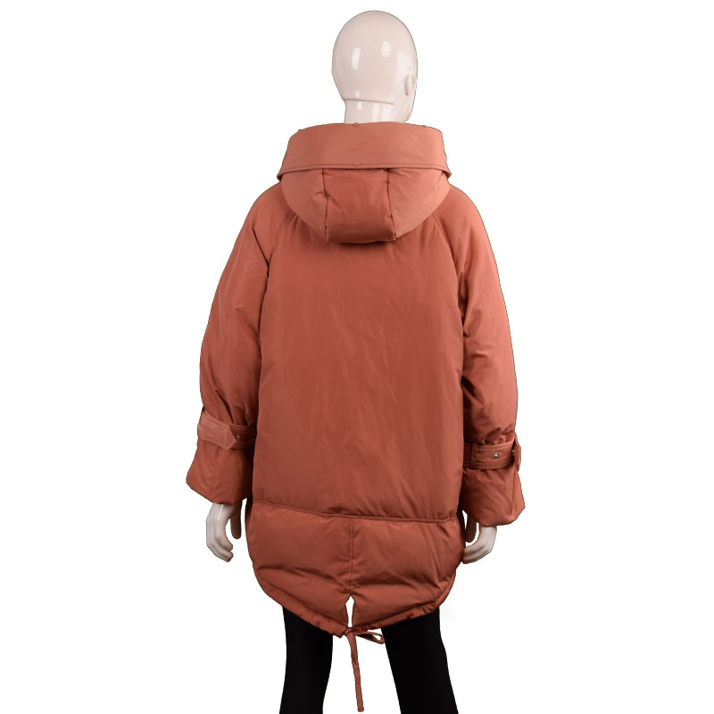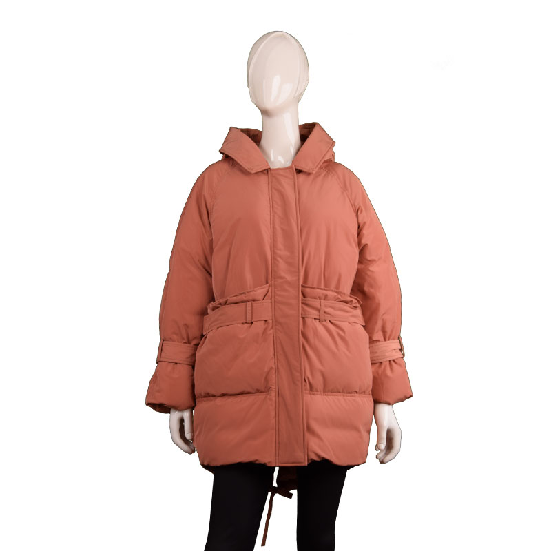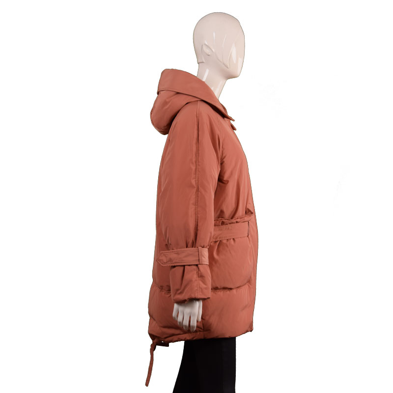 女士翻領(lǐng)中長腰帶款羽絨服